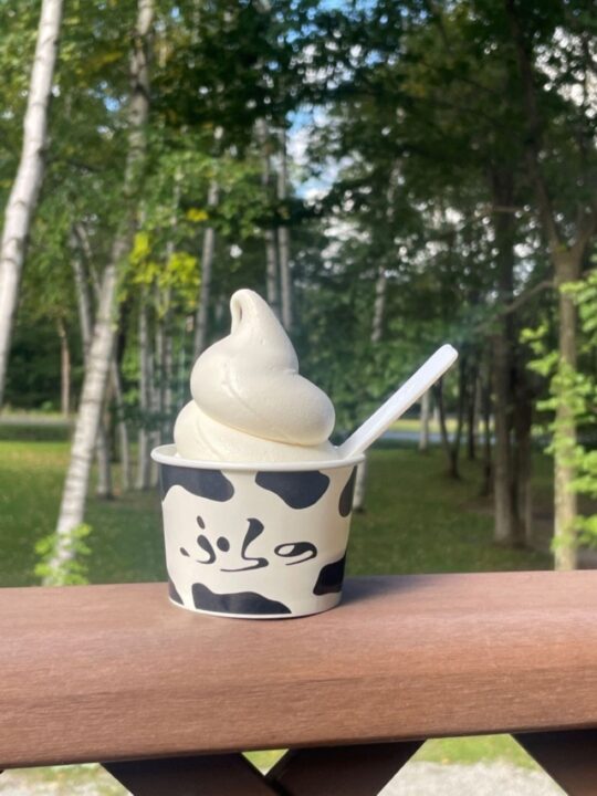 富良野チーズ工房でいただいたチーズソフトは、一口いただくとミルクいっぱいの甘い香りとチーズがほんわかと口の中に残り、いくつでも食べられるような幸せな味わい。最高のとろける味は格別でした。人気の理由にも納得です。