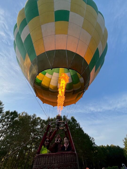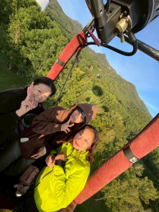 早朝、新富良野プリンスホテルの近くで熱気球体験をしました。