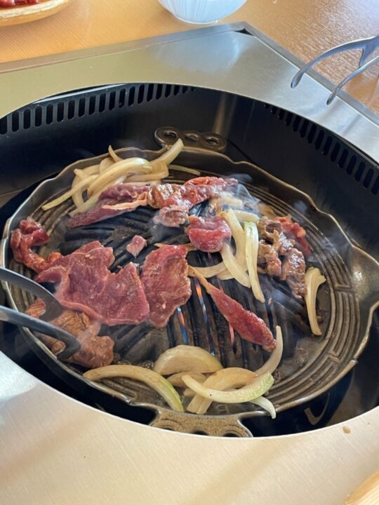 カンパーナ六花亭に隣接するジンギスカン白樺 富良野店でのランチは、ぶどう畑に囲まれたレストランで。ラムとマトン(子羊)の2種類をいただき、驚くほど柔らかいお肉に特製のソースがマッチして、ライスが進み、御代わりしてしまいました。