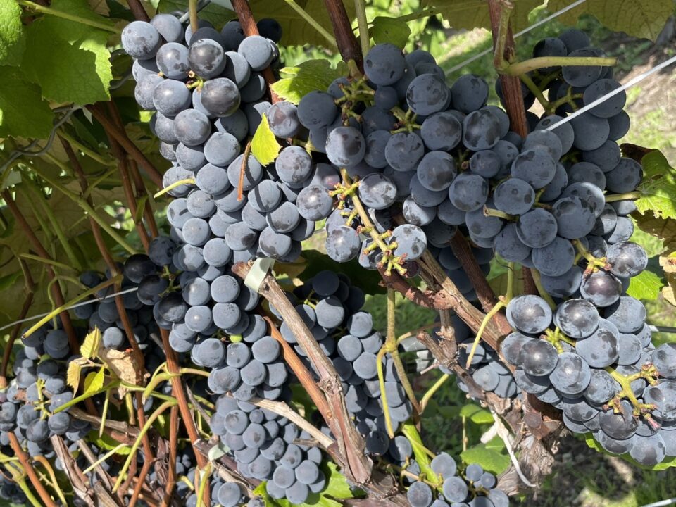 休憩時間は、果汁用の甘いぶどうを試食し糖分をチャージ。非日常のなかでワインの奥深さの魅力に取りつかれていきました。