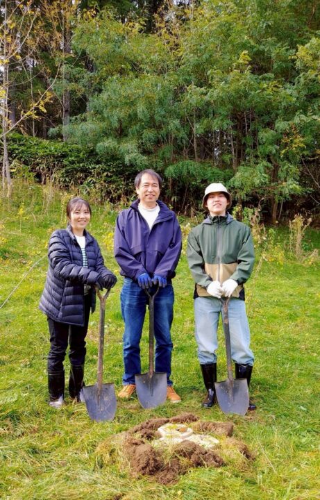 富良野自然塾での体験を通じて約3時間のプログラムでは、かつてゴルフ場だった場所を森へと再生する取り組みの一環として、環境教育プログラムと植樹活動を体験しました。