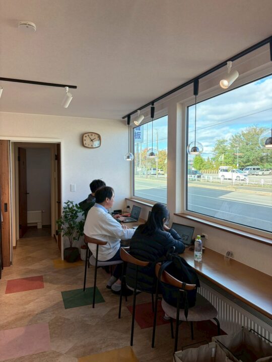 宿泊施設「栞FURANO」は、ワークもできるフリースペースに加え、モニター付きの個室ワークブースを備えておりオンライン会議も可能で、とても使いやすかったです。