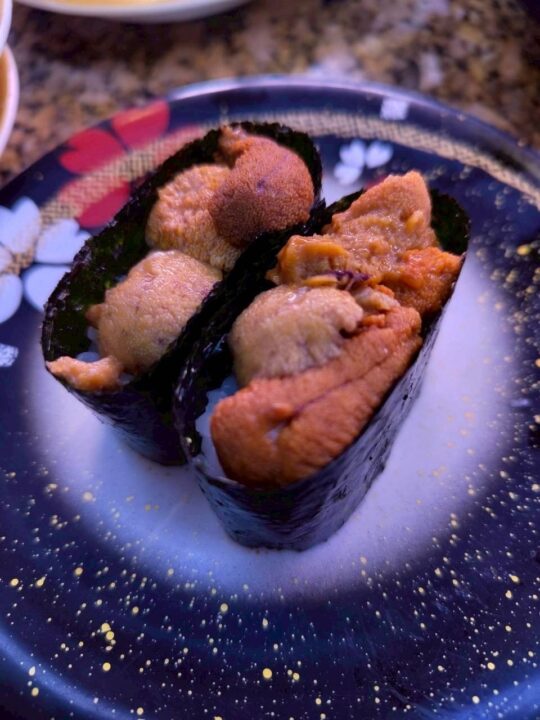 北海道といえば海鮮ということで回転寿司「トピカル」へ行きました。新鮮なネタが美味しく、特にウニが格別でした!