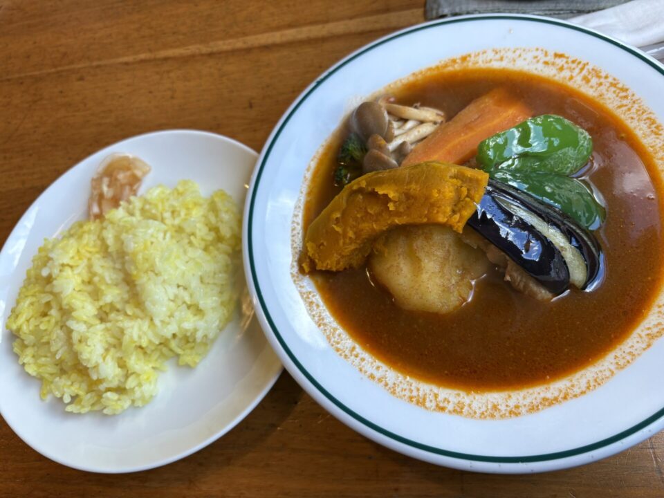 (有)ライズへ訪問した際においしいと伺ったスープカレーとスパイスカレーのお店「きち」でスープカレーをいただきました。スパイスが効いていて、具材も大きく食べ応えがあり、とても美味しかったです。