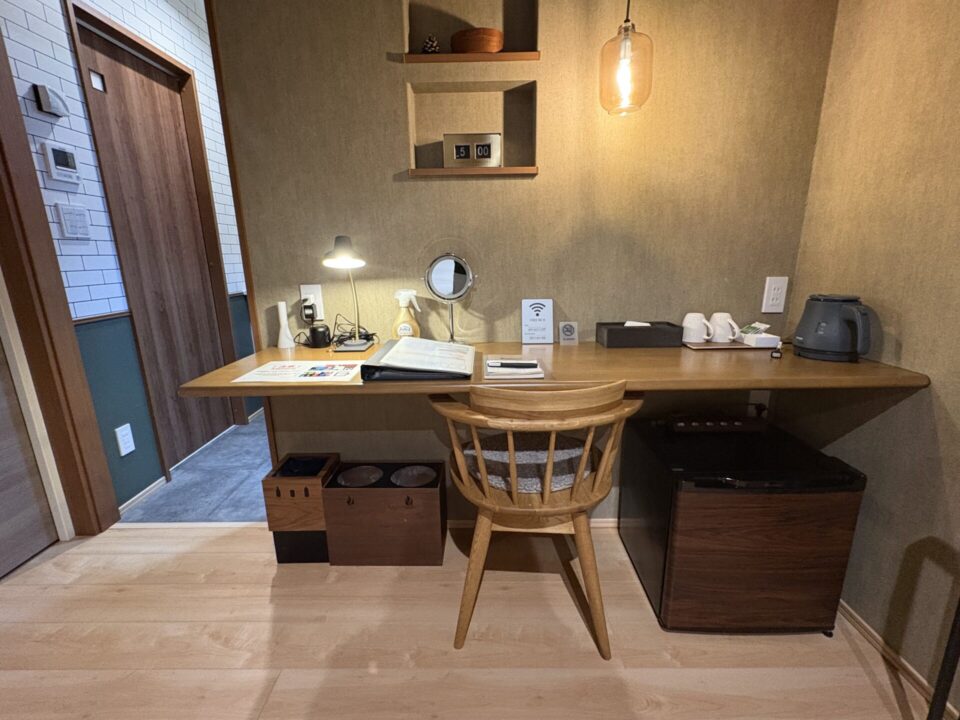 仕事は滞在先の「栞FURANO」で行いましたが、部屋の造作デスクが幅広で使いやすく、仕事が捗りました。