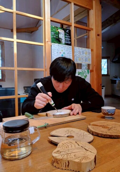 NPO法人富良野自然塾が企画するゼロカーボントラベラーの「ウッドバーニング体験」(防草プレート製作)に参加しました。