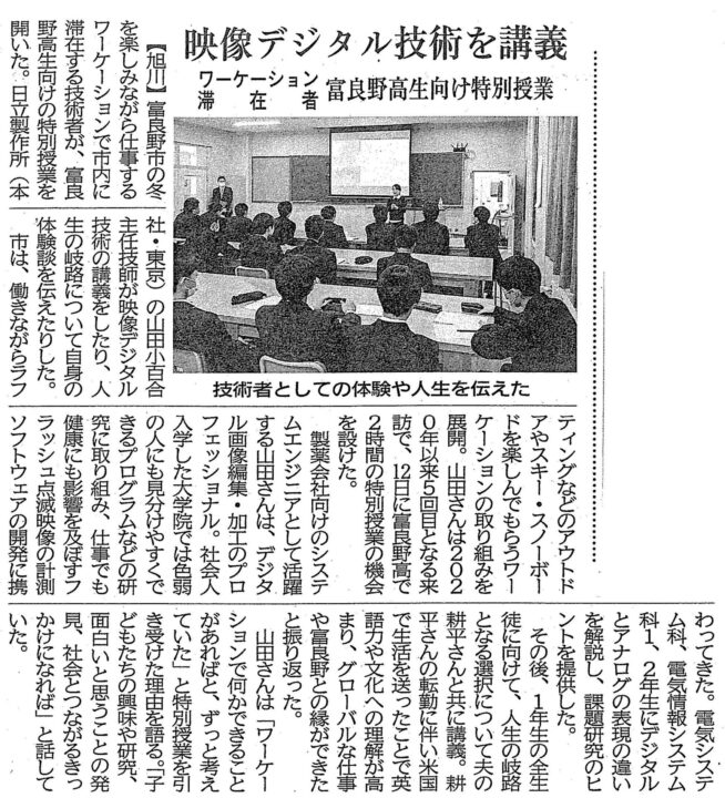 2月11日~15日の4泊5日で富良野市に滞在し、富良野スノーワーケーションを行った日立製作所の山田さんが、富良野高校で特別授業を実施しました。